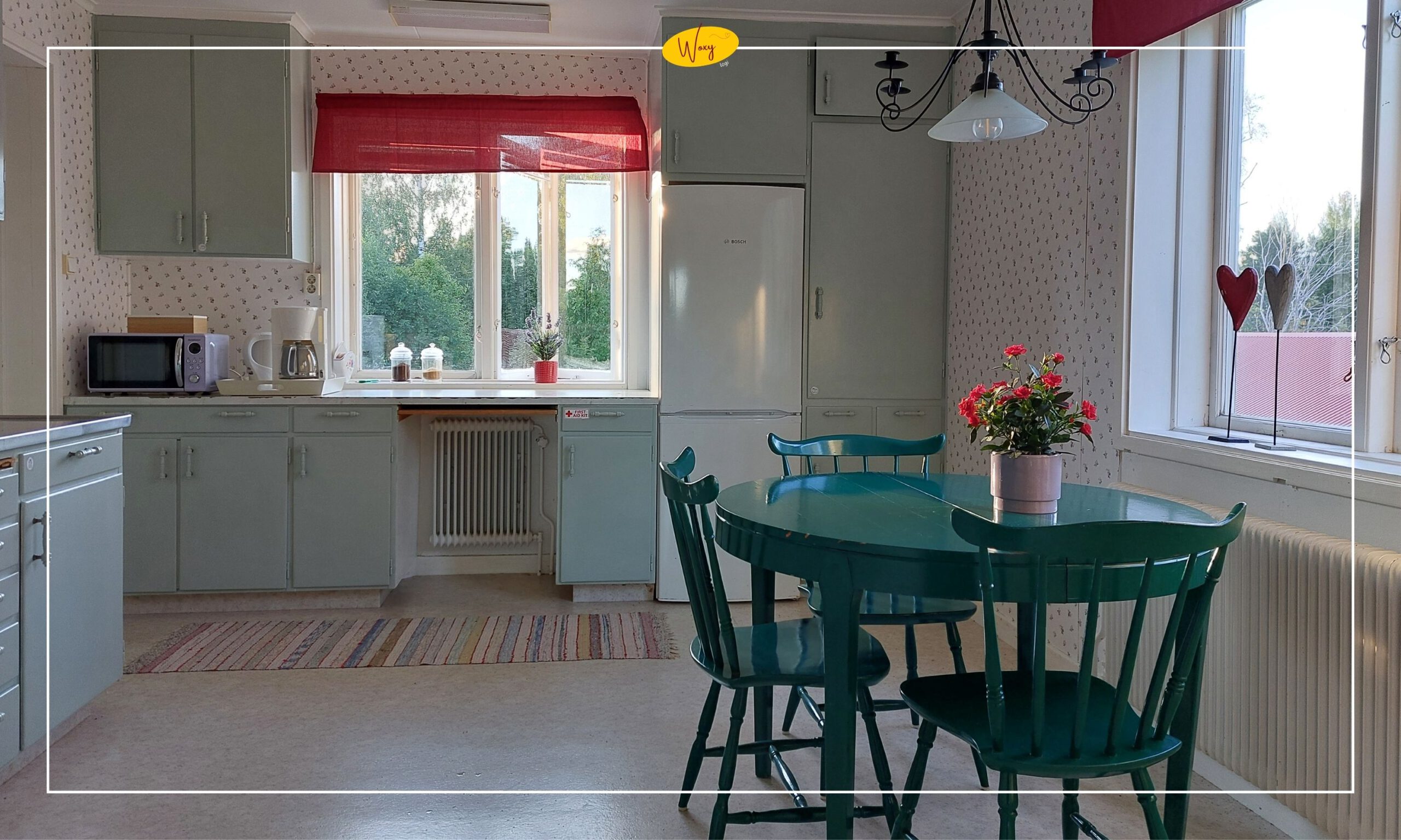 Uitgebreid koken of gewoon snel iets klaarmaken? In de woonkeuken is alles wat je nodig hebt: fornuis, oven, magnetron, ruime vriezer en genoeg pannen en servies.