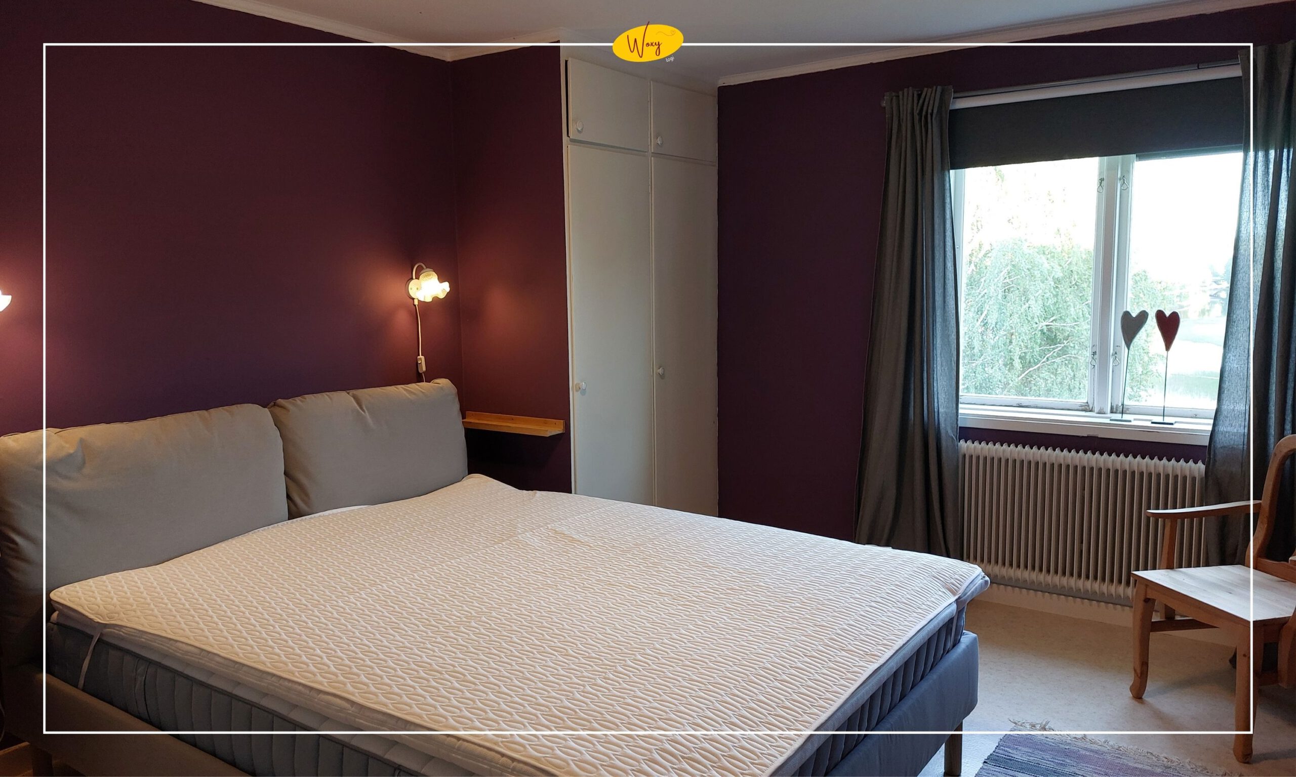 In de slaapkamer staat een nieuw en comfortabel queen size bed. Met je eigen beddengoed slaap je net zo lekker als thuis – misschien zelfs beter. Er is volop kastruimte.