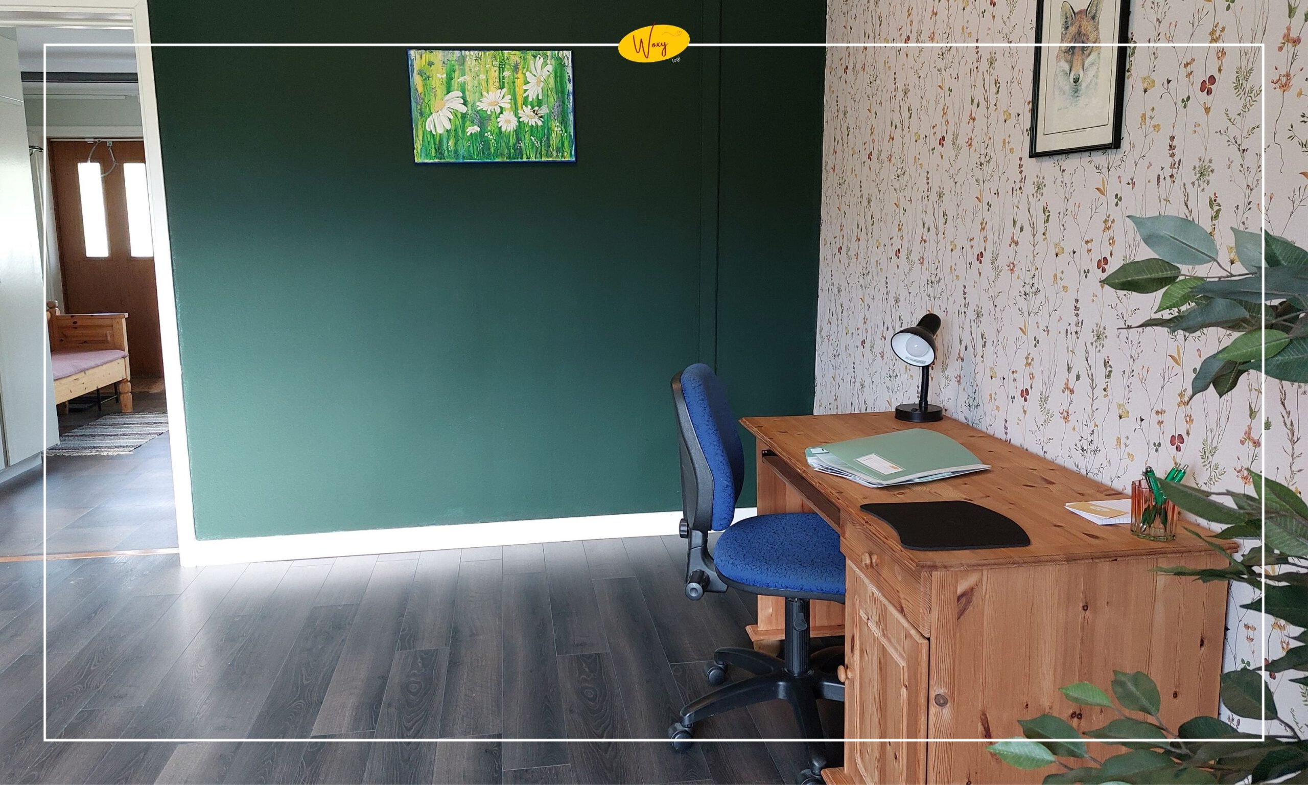Sovrummet har en härlig queen-size säng och gott om plats för dina grejer. Sängkläder (både sommar- och vinteralternativ) ingår. Behöver du en spjälsäng? Säg bara till!